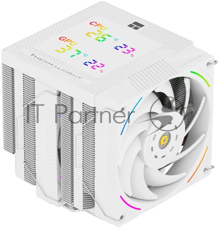 Кулер для процессора Thermalright Phantom Spirit 120 Digital SNOW (4-pin PWM, LED temp., 160mm, Ni/CU, 7x6mm, ARGB, 2x120mm, 69CFM, 27dBA, 2150RPM, S: 1851, 1700, 1200, 115X, AM5, AM4, white)