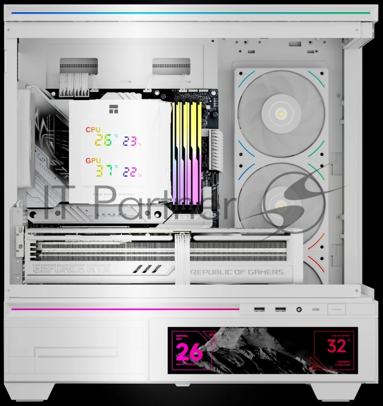 Кулер для процессора Thermalright Royal Knight 120 Digital White (4-pin PWM, LED temp., 162mm, Ni/Cu, 6x6mm, 2x120mm, 80.45CFM/56.36CFM, 29.4dBA/28.4dBA, 2150RPM/1900RPM, S: 1200, 1700, 1851, 115X, 2011, 2066, AM4, AM5, white)