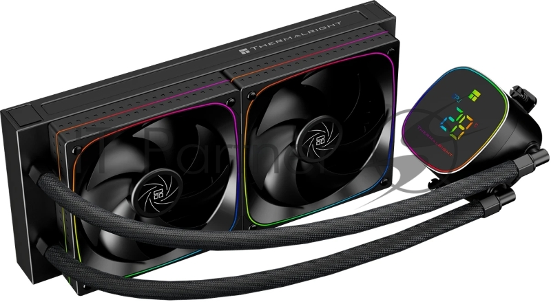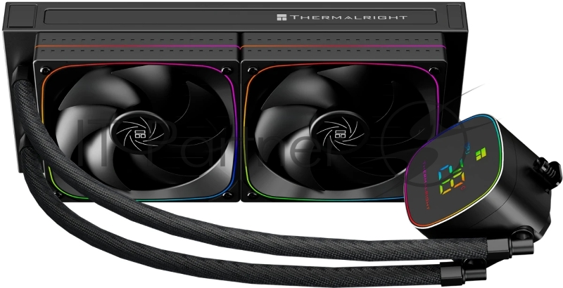 Система жидкостного охлаждения Thermalright Frozen Horizon 240 Digital (240mm, LED temp., Black, ARGB/ Fans: 2x120mm, 68.9CFM, 28.2dBA, 2000RPM/ Pump height 53.2mm, Rad thickness 27mm/ S: 1700, 1200, 1851, 115X, AM5, AM4)