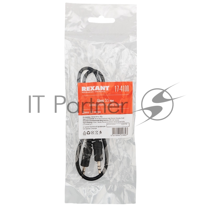 Шнур Rexant Стерео 3,5 мм штекер - Стерео 3,5 мм штекер, длина 0,5 метра