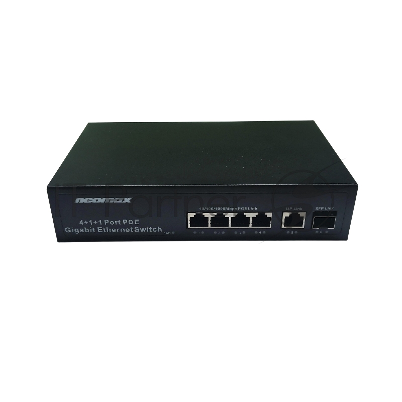 Коммутатор неуправляемый NEOMAX NMS-106PoE-1000-S, 6 портов 1000 Mbps, 4xPoE + 1xSFP, металл