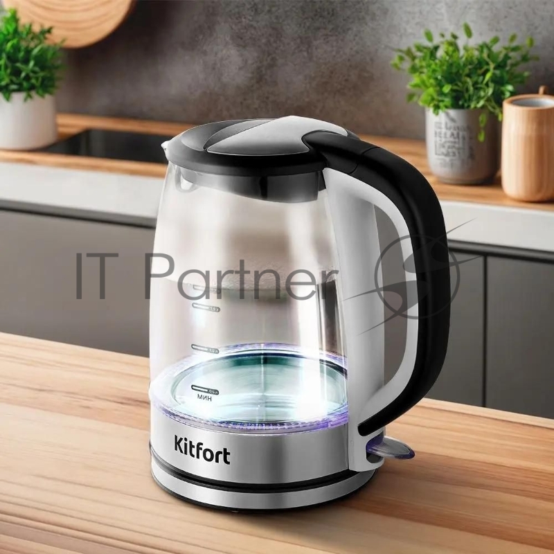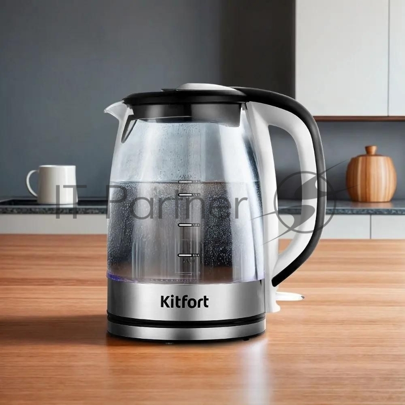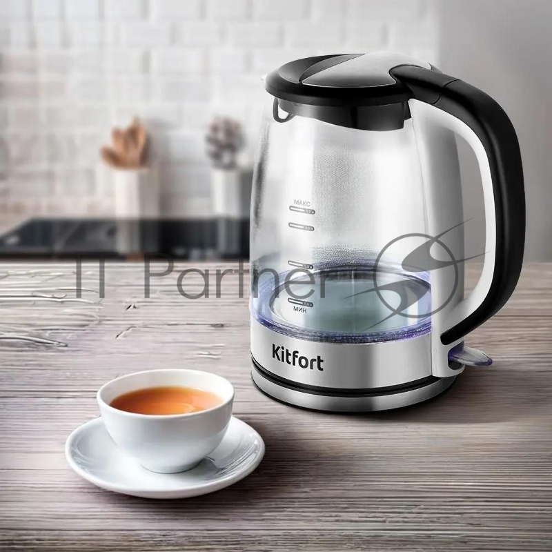 Чайник электрический Kitfort КТ-6628 1.7л. 2200Вт нержавеющая сталь/черный корпус: нерж.сталь/стекло