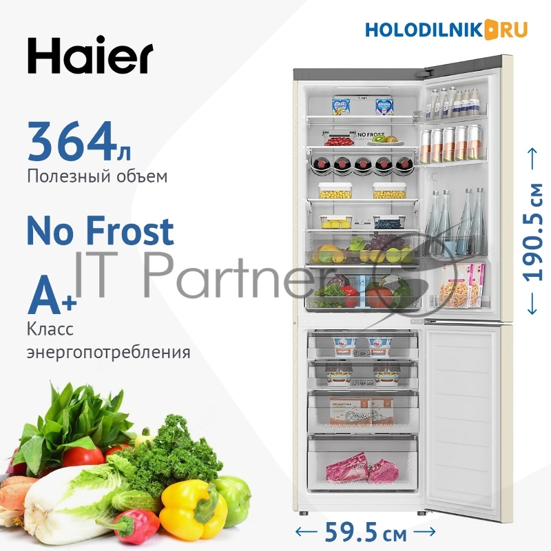 Холодильник Haier C2F636CCFDU1 бежевый двухкамерный 256/108 л морозилка снизу, No Frost
