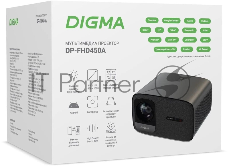 Проектор Digma DP-FHD450A LCD 8000Lm LS 600Lm ANSI (1920x1080) 3000:1 ресурс лампы:50000часов 2xUSB typeA 2xHDMI 3.2кг