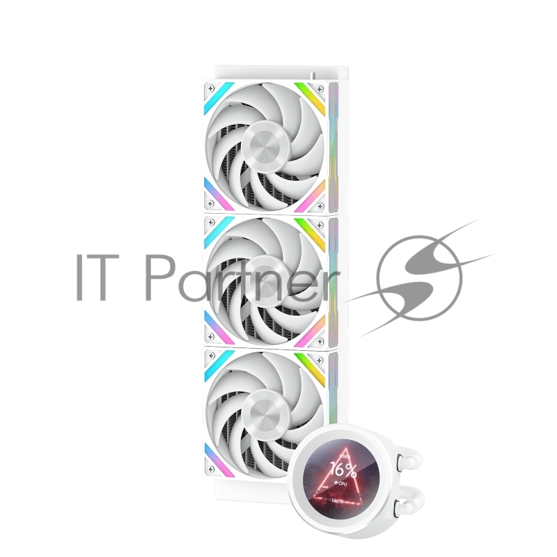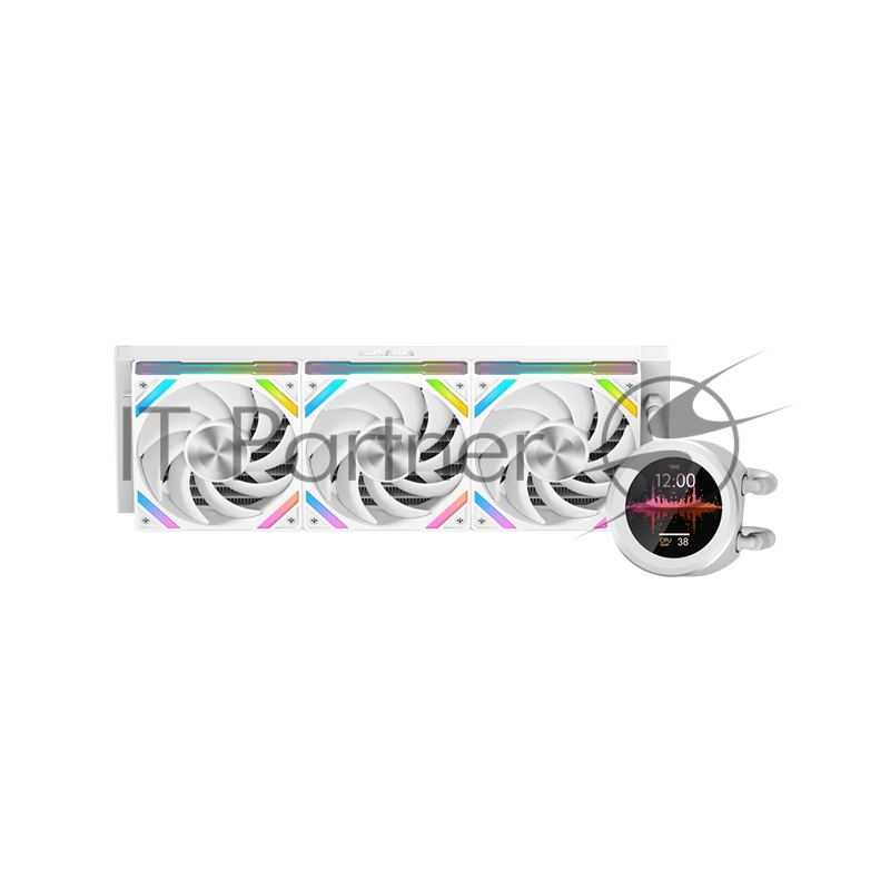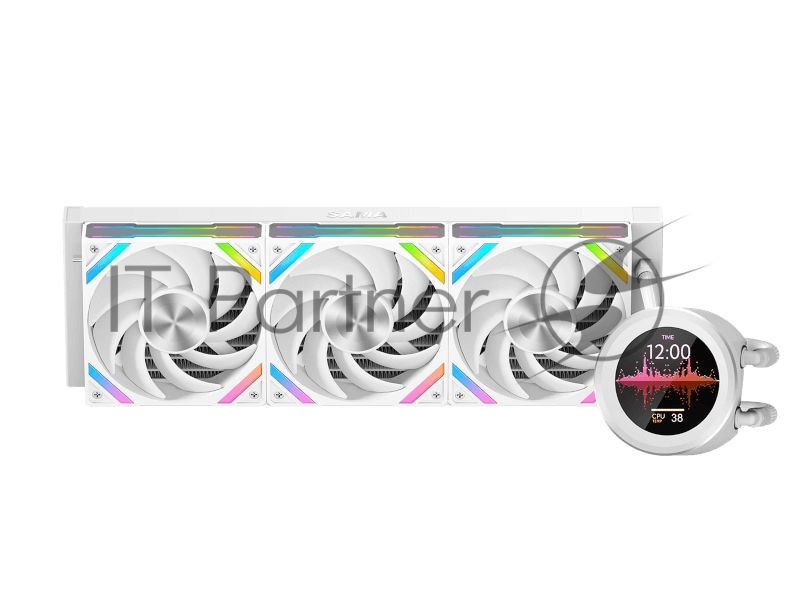 Водяное охлаждение для процессора SAMA Q60 белый (360мм, LED temp., White, ARGb/Fans: 3x120мм, 86CFM, 30dBA, 2600RPM/Pump height 64мм, 30dBA, 2800RPM, Rad thickness 27мм/S: 1851, 1700, 1200, 20XX, 115X, AM5, AM4)