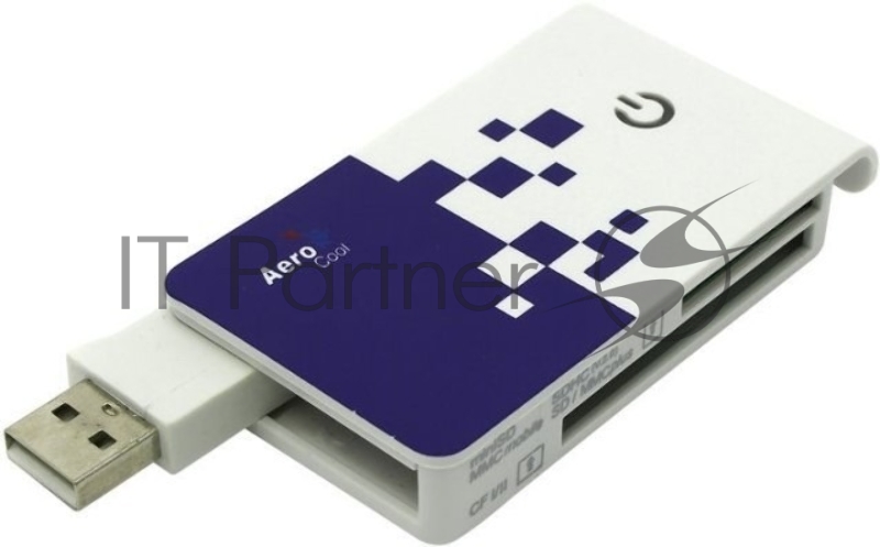 Карт-ридер внешний AeroCool AT-955A/белый-синий/Micro SD/Micro SDHC/Micro SDXC/SD/SDHC/SDXC/MS/MS Duo/MS Micro (M2)/USB 2.0 Type-A/пластик