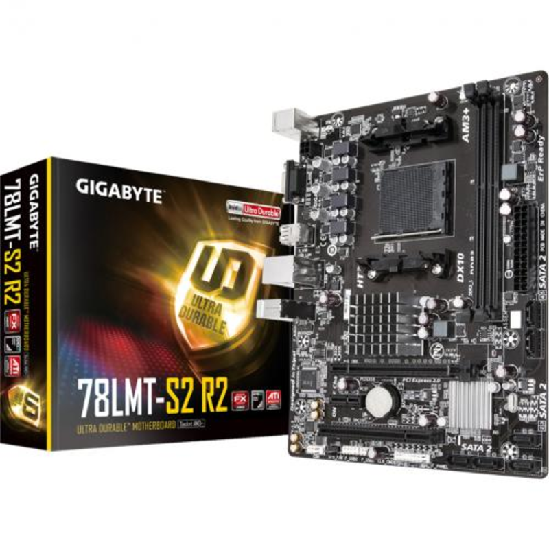 Мат. плата SocketAM3+ GIGABYTE GA-78LMT-S2 R2 (AMD 760G, 2xDDR3, SATA II, RAID, PCI-E, D-Sub, 1Гбит LAN, USB2.0, mATX)