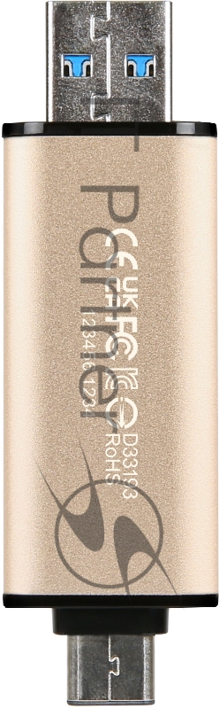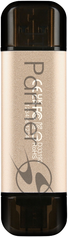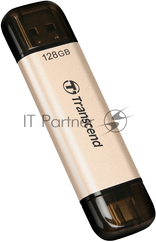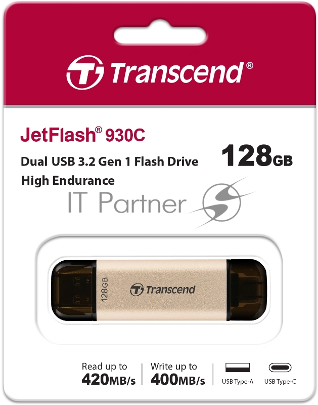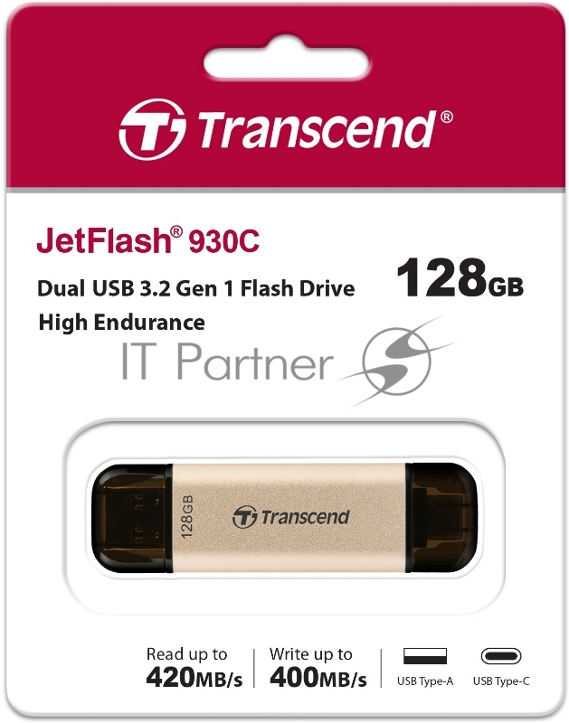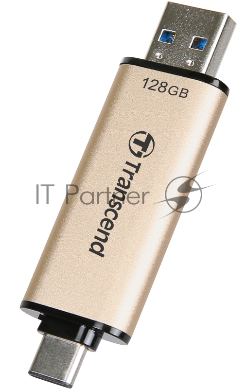 Флешка USB Transcend JETFLASH 930 (TS128GJF930), 128Gb, USB 3.2 Type-C/Type-A, R/W 420/400, золотистый/черный