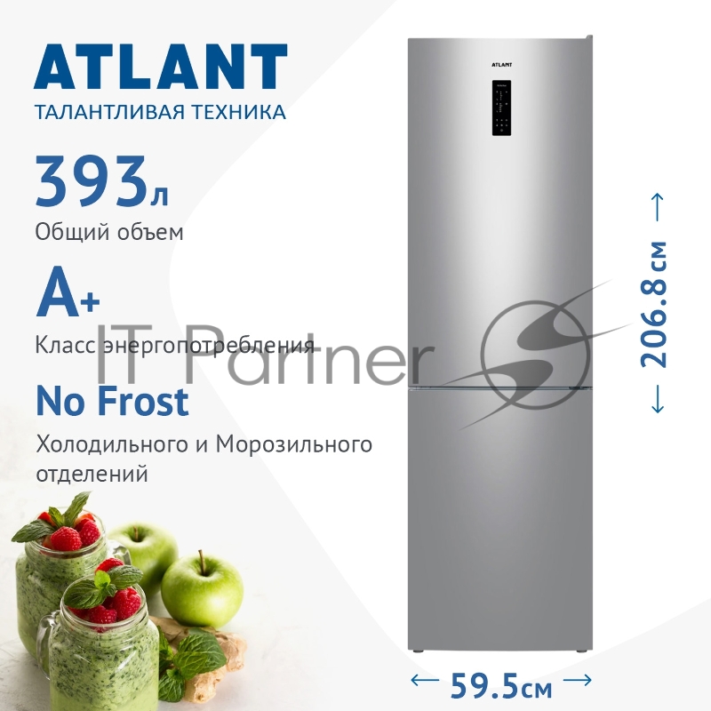 Холодильник Atlant ХМ-4626-181-NL серебристый двухкамерный 254/94л морозилка снизу, No Frost