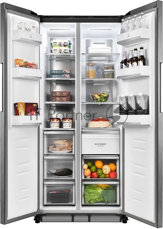 Холодильник LEX LSB458StGIDBI серый трехкамерный 234/202л морозилка снизу, No Frost, Side by Side