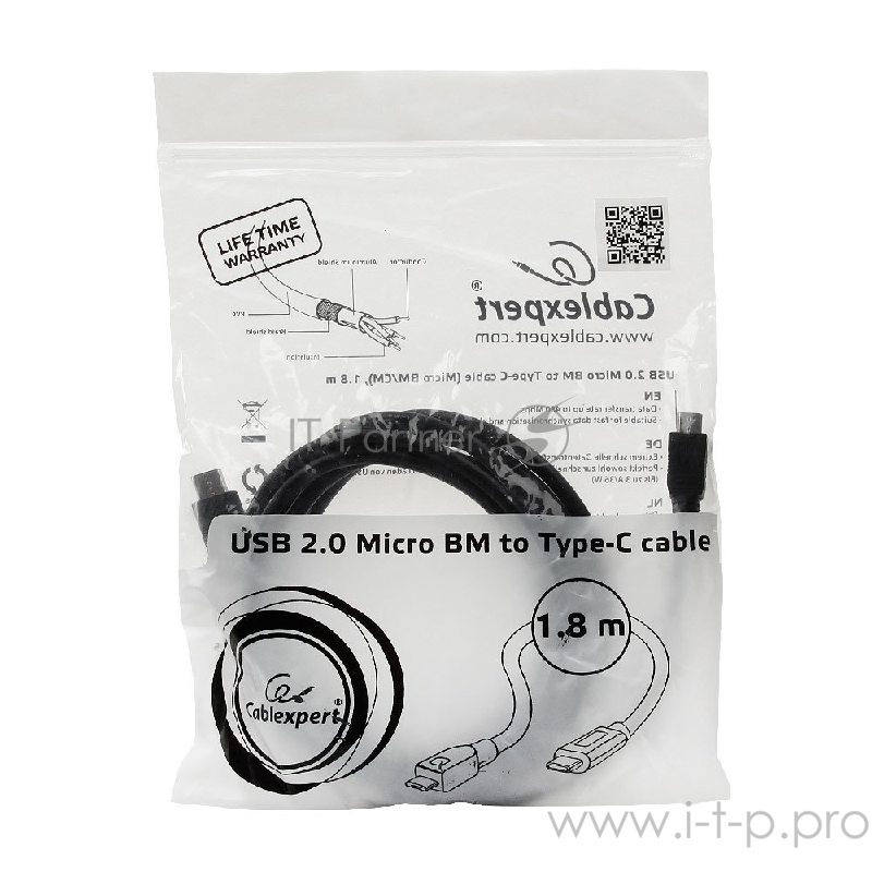 Кабель Cablexpert CCP-USB2-mBMCM-6 Кабель USB2.0 microBM/USB3.1TypeC, 1.8м,