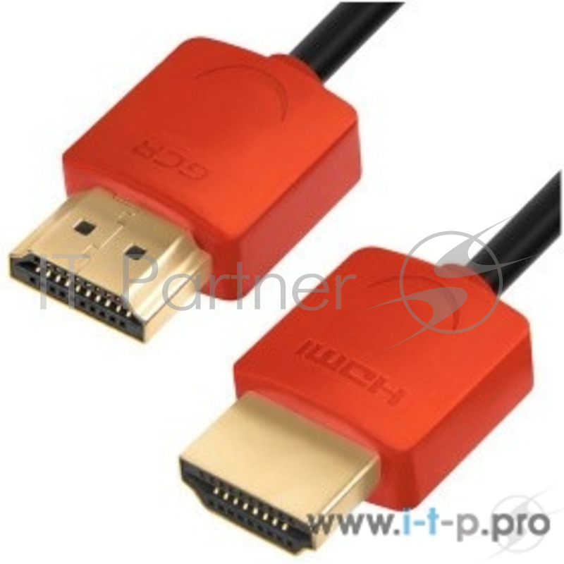 Кабель Greenconnect Кабель 0.3m HDMI версия 1.4, черный, красные коннекторы, Slim OD3.8mm, 32/32 AWG, позолоченные контакты, Ethernet 10.2 Гбит/с, 3D, 4K, Premium , экран(GCR-HM550-0.3m)