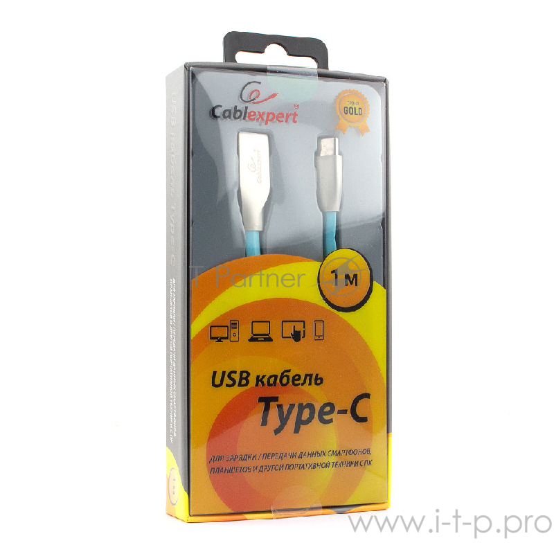 Кабель Cablexpert Кабель USB 2.0 CC-G-USBC01Bl-1M AM/Type-C, серия Gold, длина 1м, синий, блистер