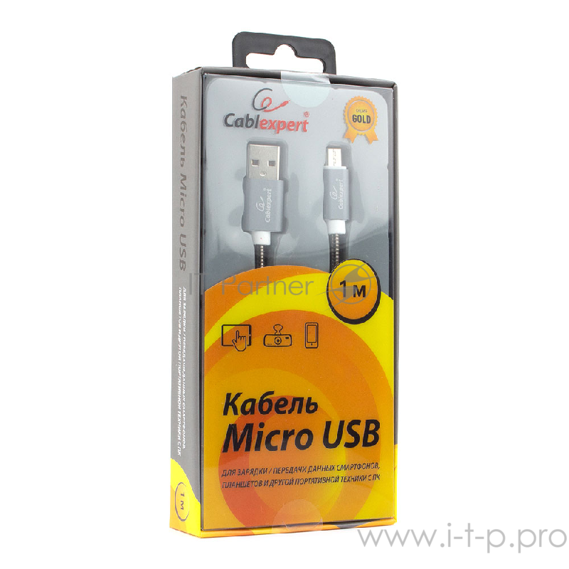 Кабель Cablexpert Кабель USB 2.0 CC-G-mUSB02Gy-1M AM/microB, серия Gold, длина 1м, титан, блистер