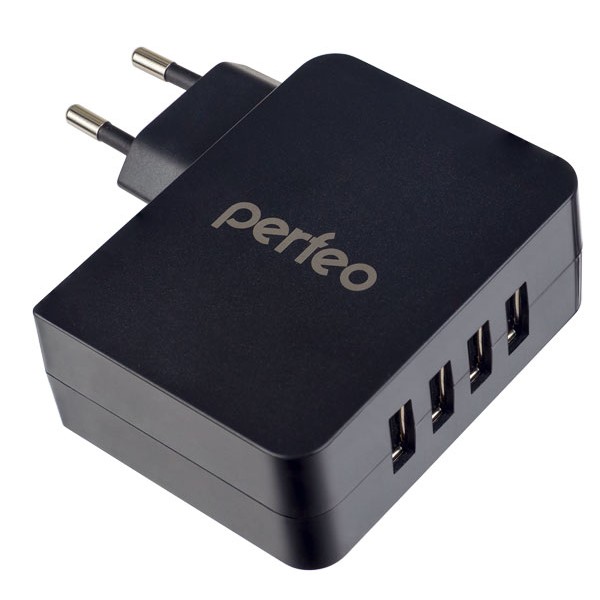 Аксессуар PERFEO Сетевое зарядное устройство с разъемом 4xUSB, 4.9А, черный, "CUBE 4" (PF_A4137)