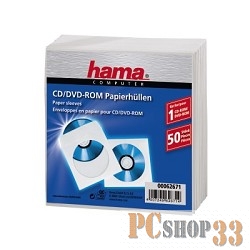 Конверт HAMA Конверты для CD/DVD бумажные с прозрачным окошком 50 шт. белый H-62671 825863