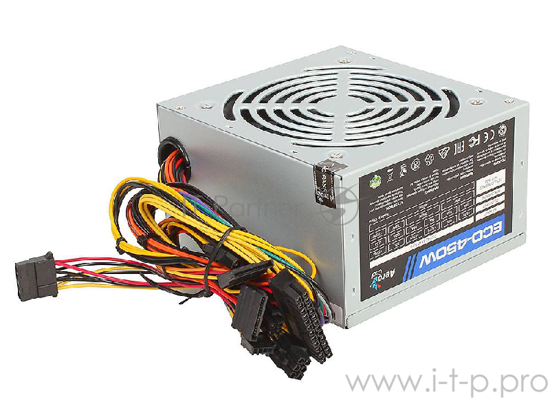Блок питания Aerocool 450W Retail ECO-450W ATX v2.3 Haswell, fan 12cm, 400mm cable, power cord, 20+4P, 12V 4P, 1x PCI-E 6P, 2x SATA, 2x PATA, 1x FDD
