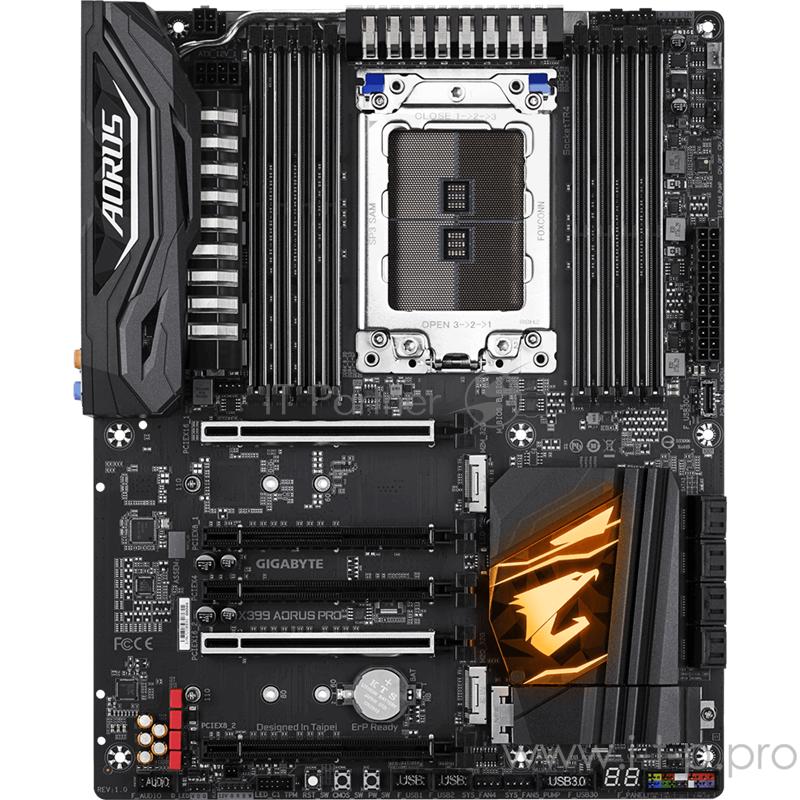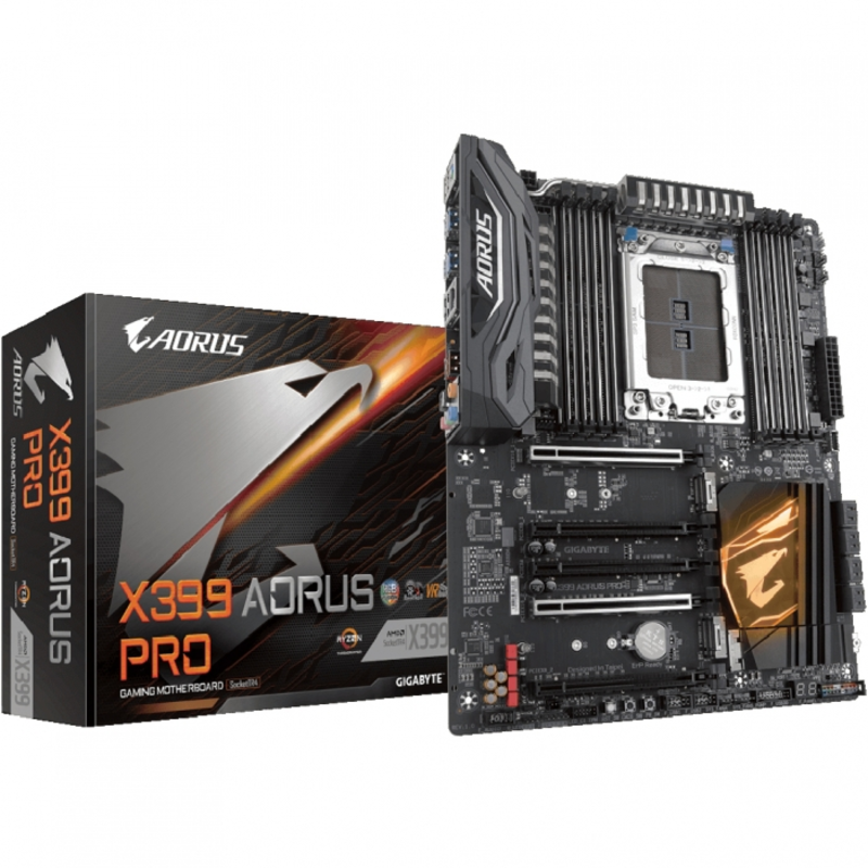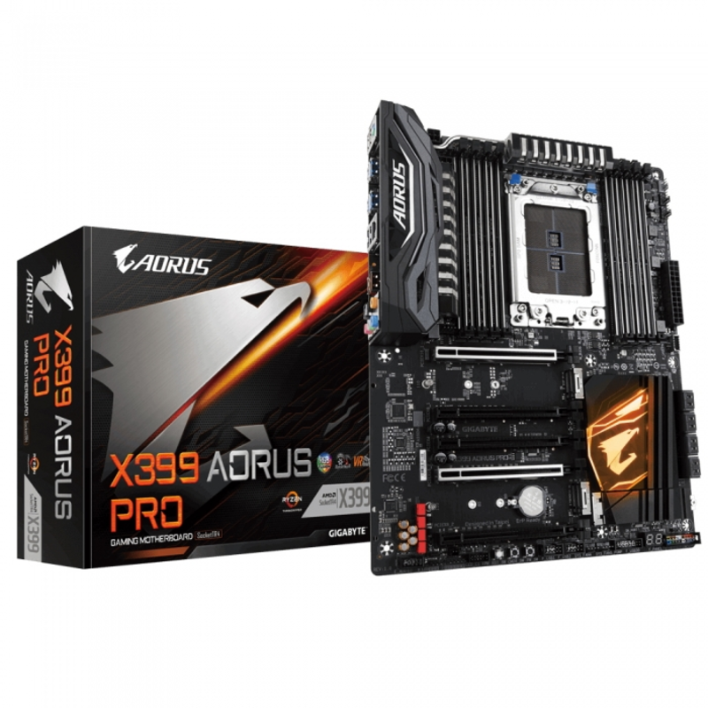 Мат. плата SocketTR4 GIGABYTE X399 AORUS PRO (AMD X399, 8xDDR4, M.2, SATA III, RAID, 5xPCI-E, 1Гбит LAN, USB3.1, ATX)