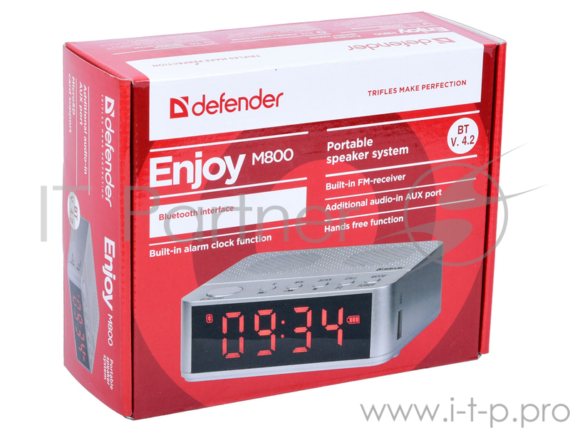Колонки Defender Enjoy M800 серебро, 3Вт, BT/Alarm/FM/USB DEFENDER