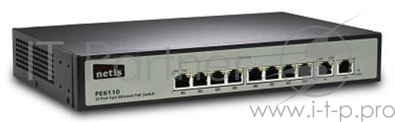 Коммутатор 10PORT 10/100M POE PE6110 NETIS Коммутатор 10-портовый 10/100/1000 Мбит/с PoE+, IEEE 802.