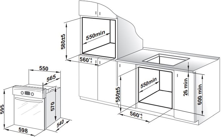 Размеры для встраивания: 55x54x57см