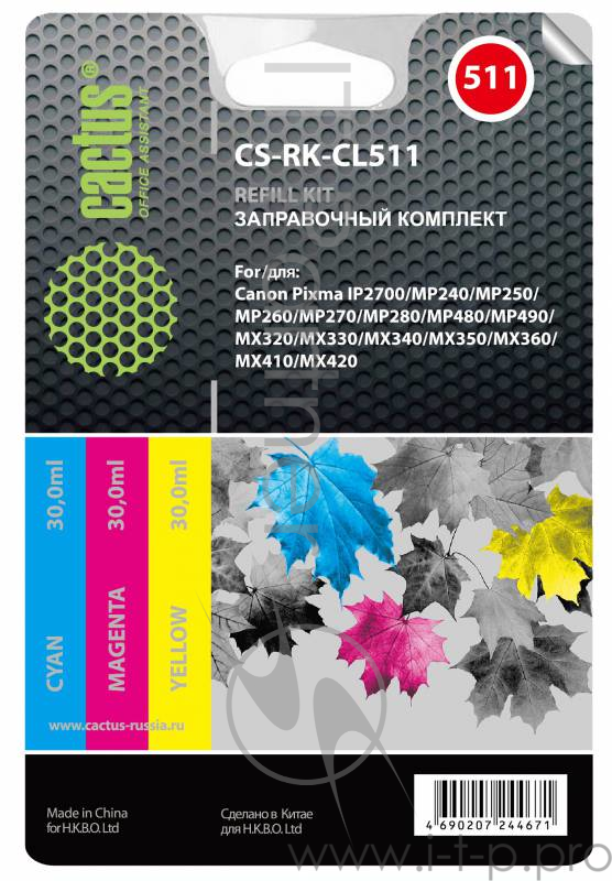 Заправка для ПЗК Cactus CS-RK-CL511 многоцветный 3x30мл для Canon MP240/MP250/MP260/MP270