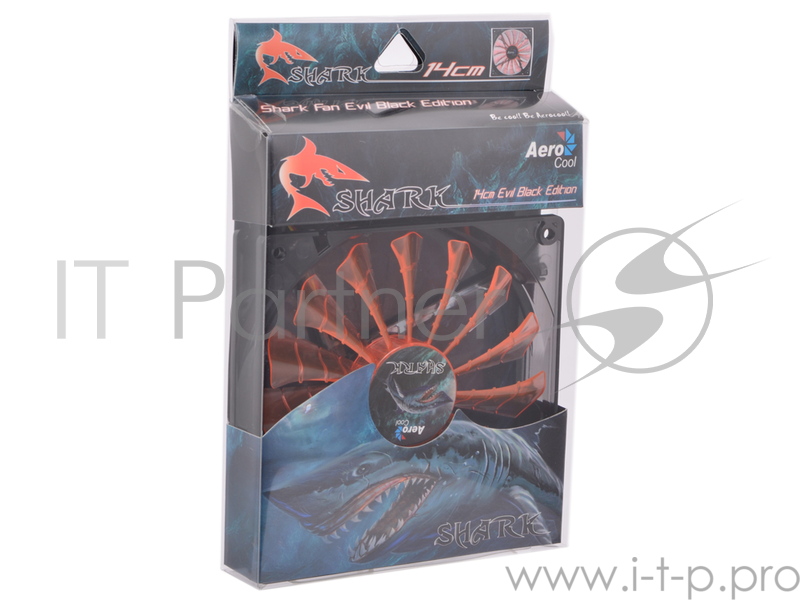 Вентилятор Aerocool Shark 14см Evil Black Edition (оранж. подсветка), 3+4 pin, 50 CFM, 800 RPM, 14