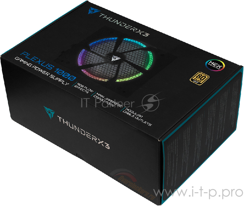 Блок питания ThunderX3 PLEXUS 1000 (1000 Вт, подсветка RGB, чёрный, 20+4 pin 1, 4+4pin 1, 4 х PATA, 6 х SATA, 4 х PCIe, 140 х 140 мм)