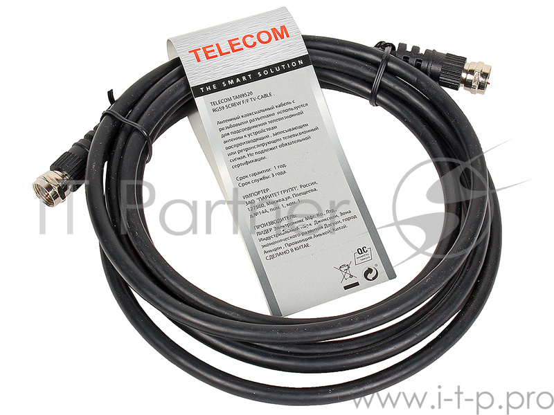 Кабель соединительный антенный RG59 F-male--F-male 2м, Telecom (TAN9520-2M)