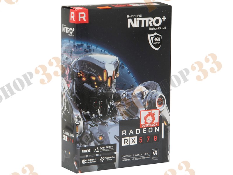 Видеокарта Sapphire Radeon RX 570 Nitro+ OC W/BP (UEFI) 4ГБ 11266-14 (Radeon RX 570, DDR5, DVI, 2xHDMI, 2xDP) (PCI-E)
