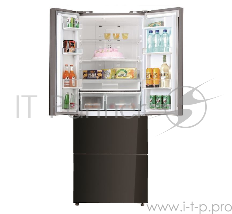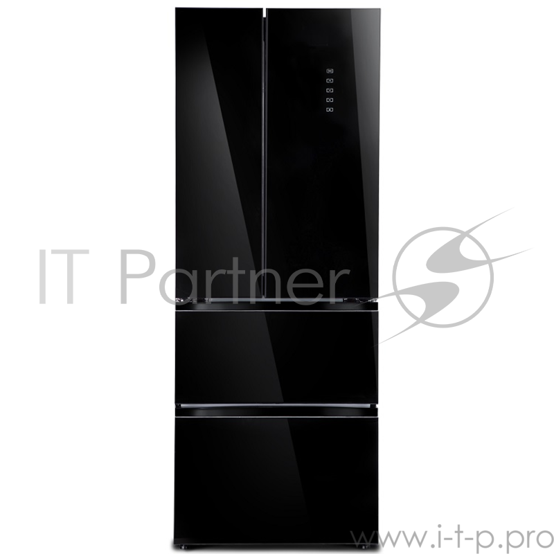 Холодильник TESLER RFD-360I BLACK GLASS, french-door, 2х камерный, 2х дверный+2 отдельных ящика, 350