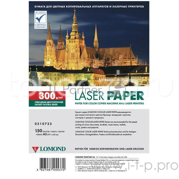 Фотобумага LOMOND Двухсторонняя Глянцевая, для лазерной печати, 300 г/м2, A3 /150л.