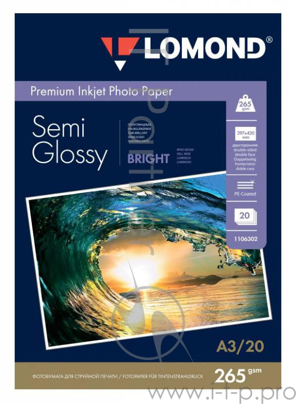 Фотобумага Lomond 1106302 A3/265г/м2/20л./белый полуглянцевое/полуглянцевое для струйной печати