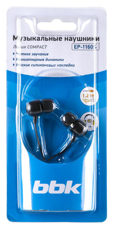 Наушники вкладыши BBK EP-1160S 1.2м черный проводные (в ушной раковине)