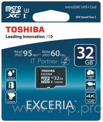 Флеш Карта MicroSD 32Gb Toshiba Class10 EXCERIA + adaptor R:95 W60 Retail [SD-CX32UHS1(6A]