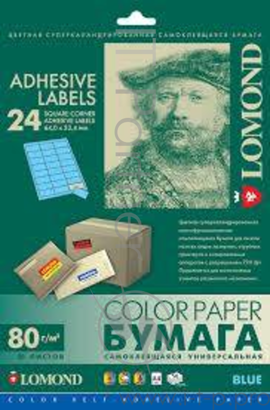 Самоклеящаяся цветная бумага LOMOND универсальная Голубая ф.А4 , 24-дел.( 70,0мм х 37,0мм), 80 г/м2.