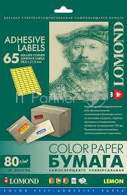 Самоклеящаяся цветная бумага LOMOND для этикеток, лимонно-желтая, A4, 65 делен. (38 x 21.2 мм), 80 г