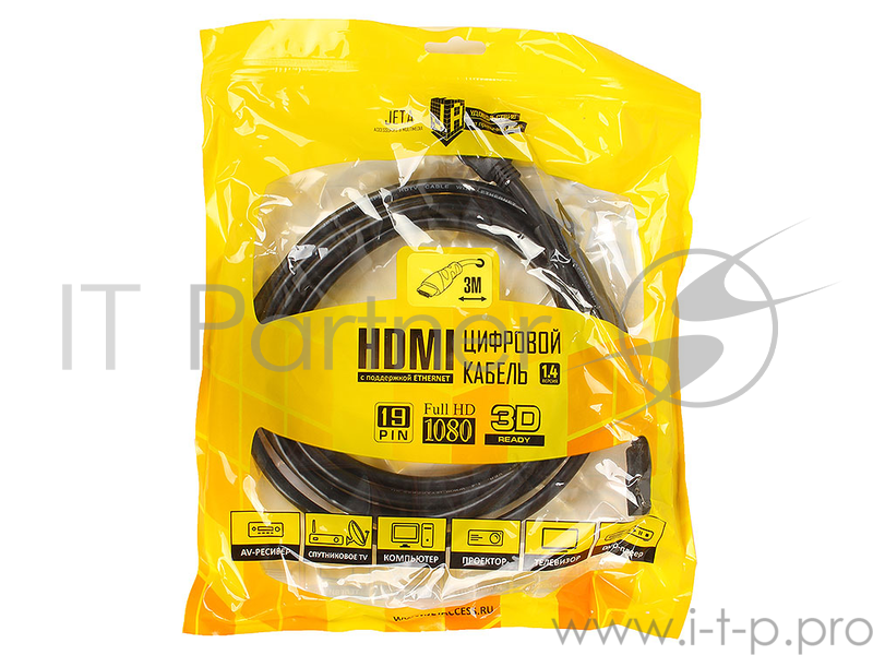 Цифровой кабель HDMI-HDMI JA-HD8 3 м (версия 1.4 с 3D Ready, Full HD 1080p/Ethernet, 19 pin, 30 AWG,