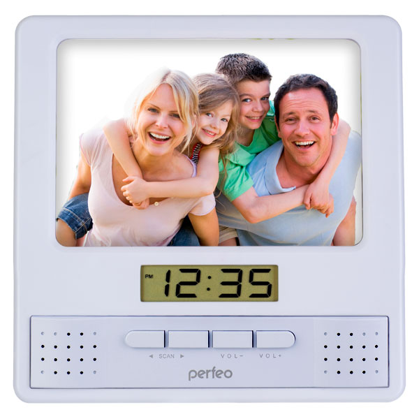 Колонки Perfeo Часы-радио-фоторамка "Foto", белый, (PF-S6005)