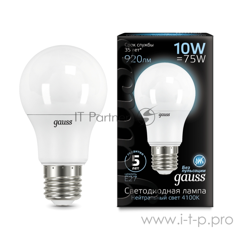 GAUSS Светодиодные лампы GAUSS 102502210 Светодиодная лампа LED A60 10W E27 920lm 4100K 1/10/50
