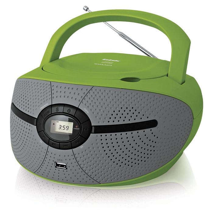 Аудиомагнитола BBK BX195U зеленый/серый 2Вт/CD/CDRW/MP3/FM(dig)/USB