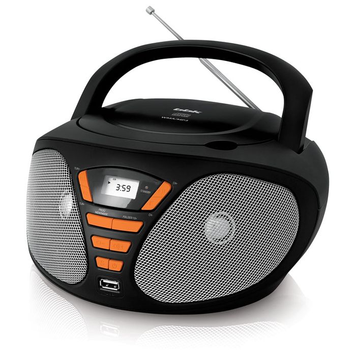 Аудиомагнитола BBK BX180U черный/оранжевый 2Вт/CD/CDRW/MP3/FM(dig)/USB