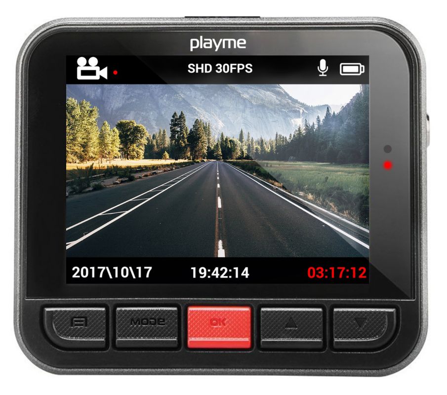 Видеорегистратор Playme MIDI черный 3.5Mpix 2304x1296 1296p 150гр. MSTAR MSC8328