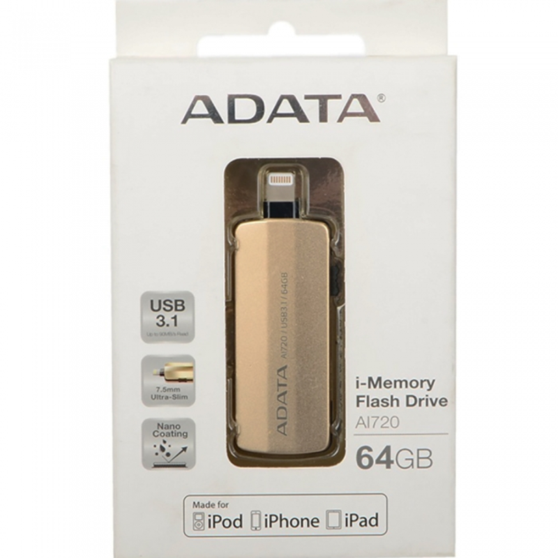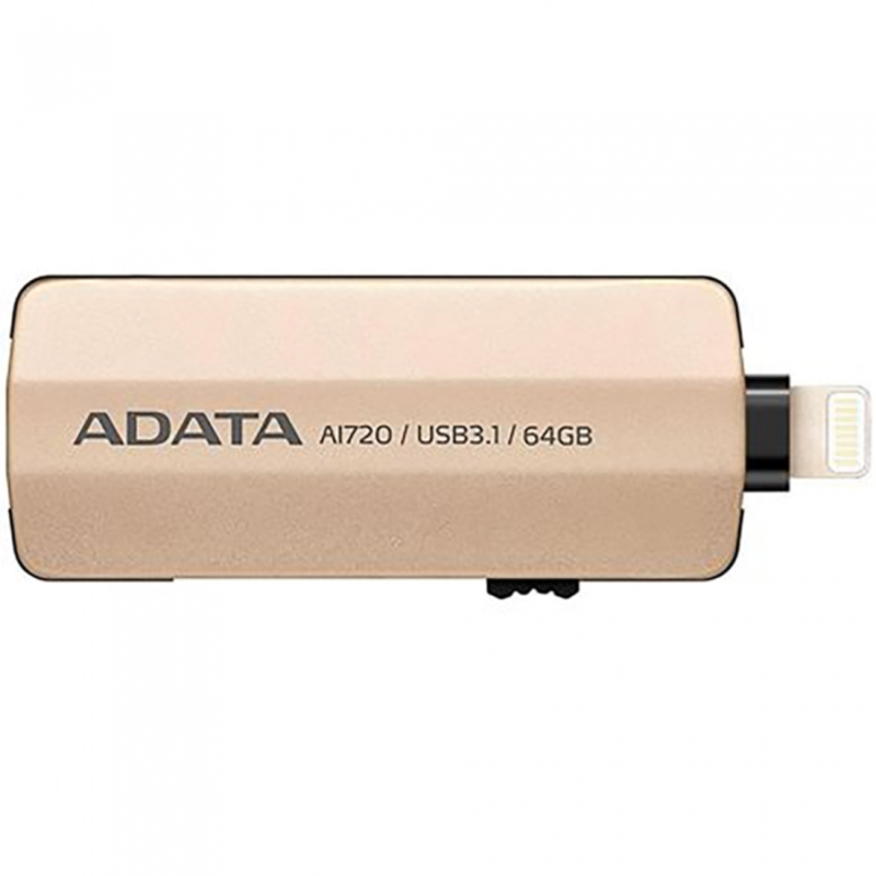 Флеш Диск 64GB A-DATA i-Memory AI720, USB 3.1/Lightning, Gold