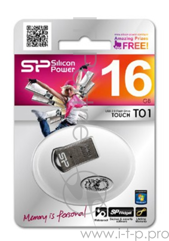 Флеш Диск 16GB SILICON POWER Touch T01 черный/серебристый, SP016GBUF2T01V1K, USB 2.0