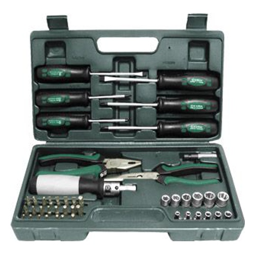 Наборы FIT IT Набор инструмента 45 шт. (пассатижи, отвертки, биты), пластиковый чемодан 65143