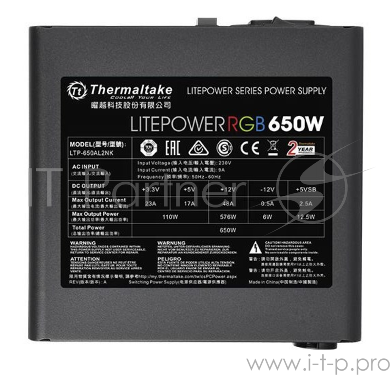 Блок питания Thermaltake Litepower RGB 650W (PS-LTP-0650NHSANE-1) v2.3, A.PFC, 80 Plus , Fan 12 cm,