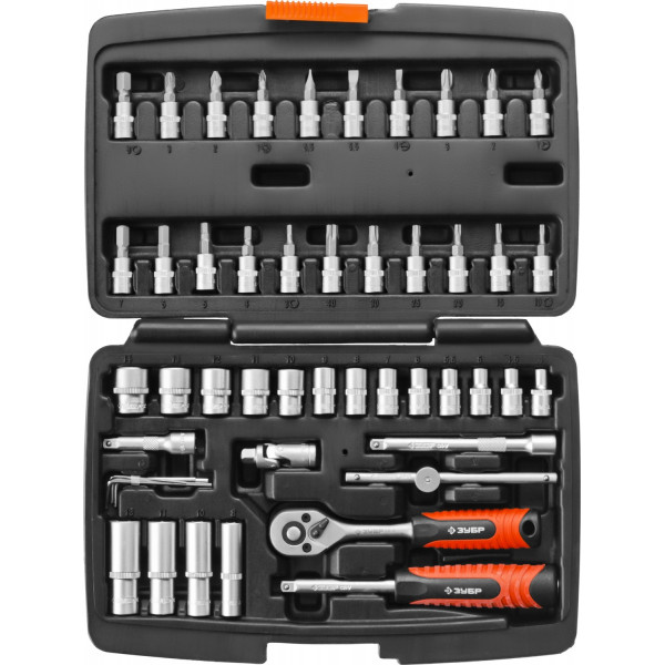 Наборы Набор ЗУБР "МАСТЕР": Торцовые головки FLANK (1/4"), биты, доп.принадлежности, Cr-V, 4-13мм, 48 предметов 27641-H48