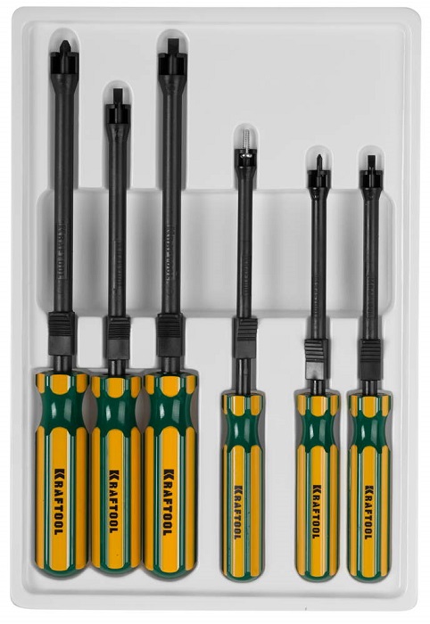 Наборы отверток Набор KRAFTOOL Отвертка "EXPERT" с держателем для труднодоступных мест, PH0, PH1, PH2, SL 4,0, SL 5,5, SL 6,5, 6 пред.26173-H6