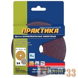 Шлифовальная бумага,лента,круги Круги фибровые гибкие ПРАКТИКА с центральным отверстием, 125 мм P 40 5шт 645-396